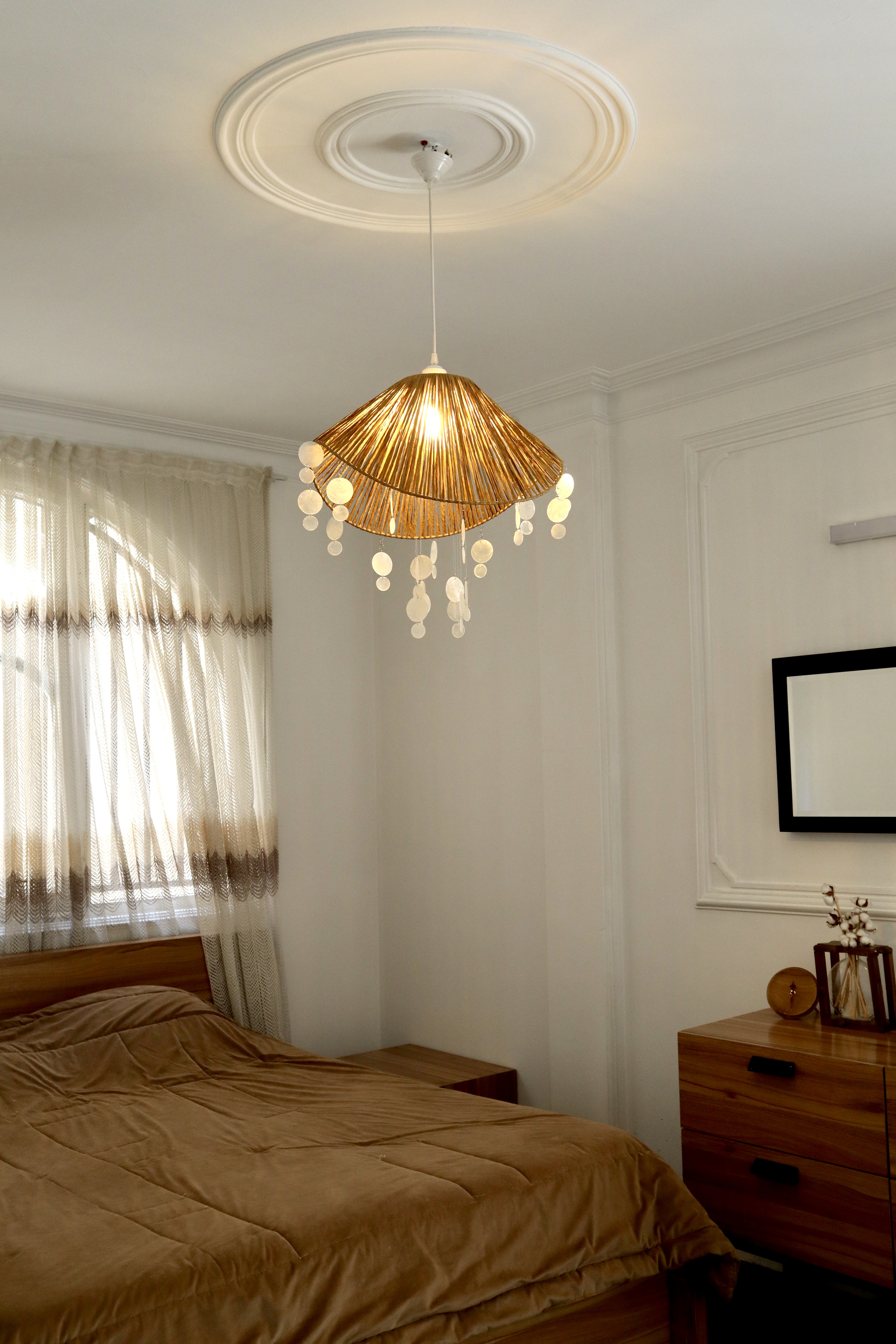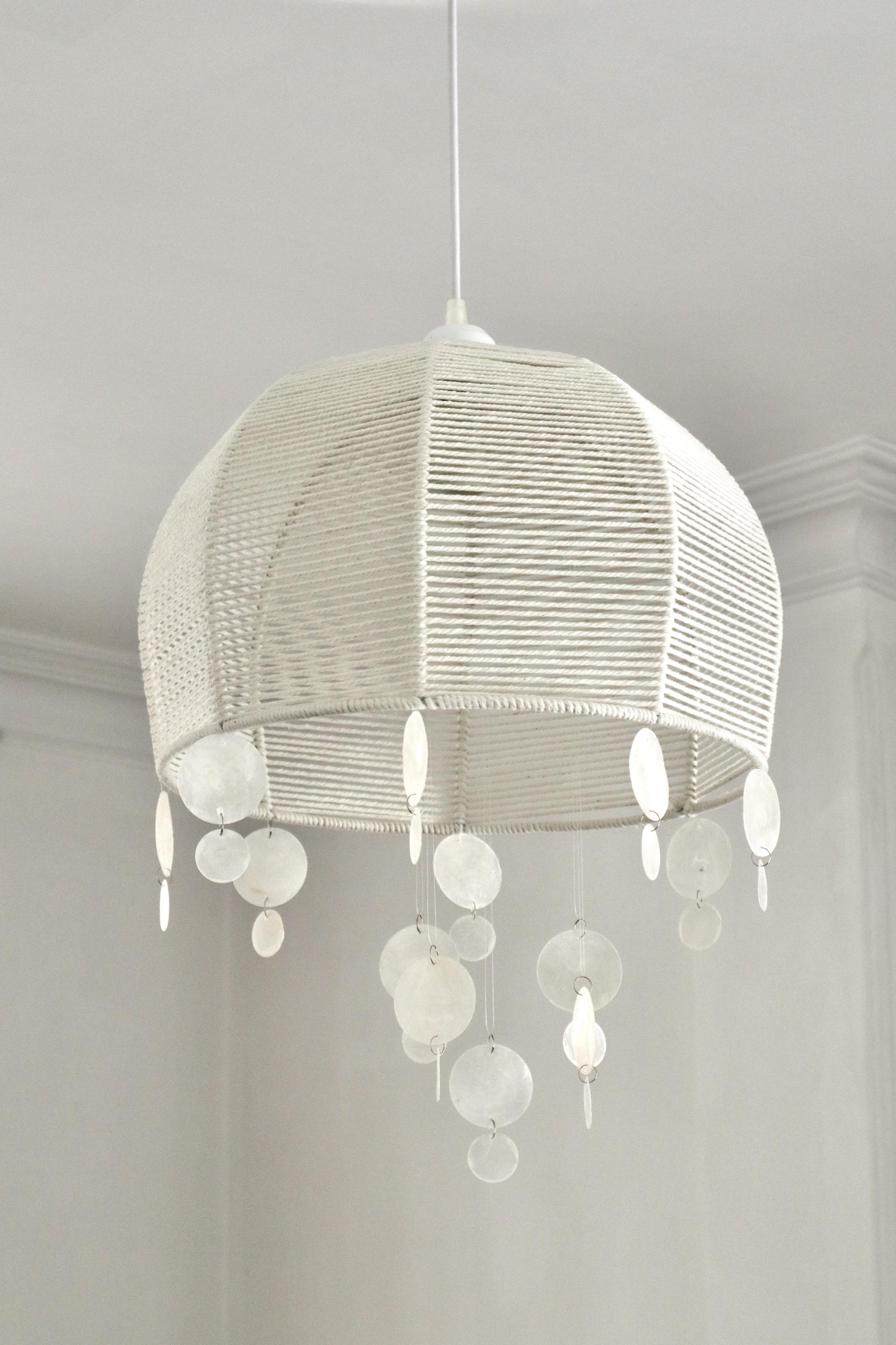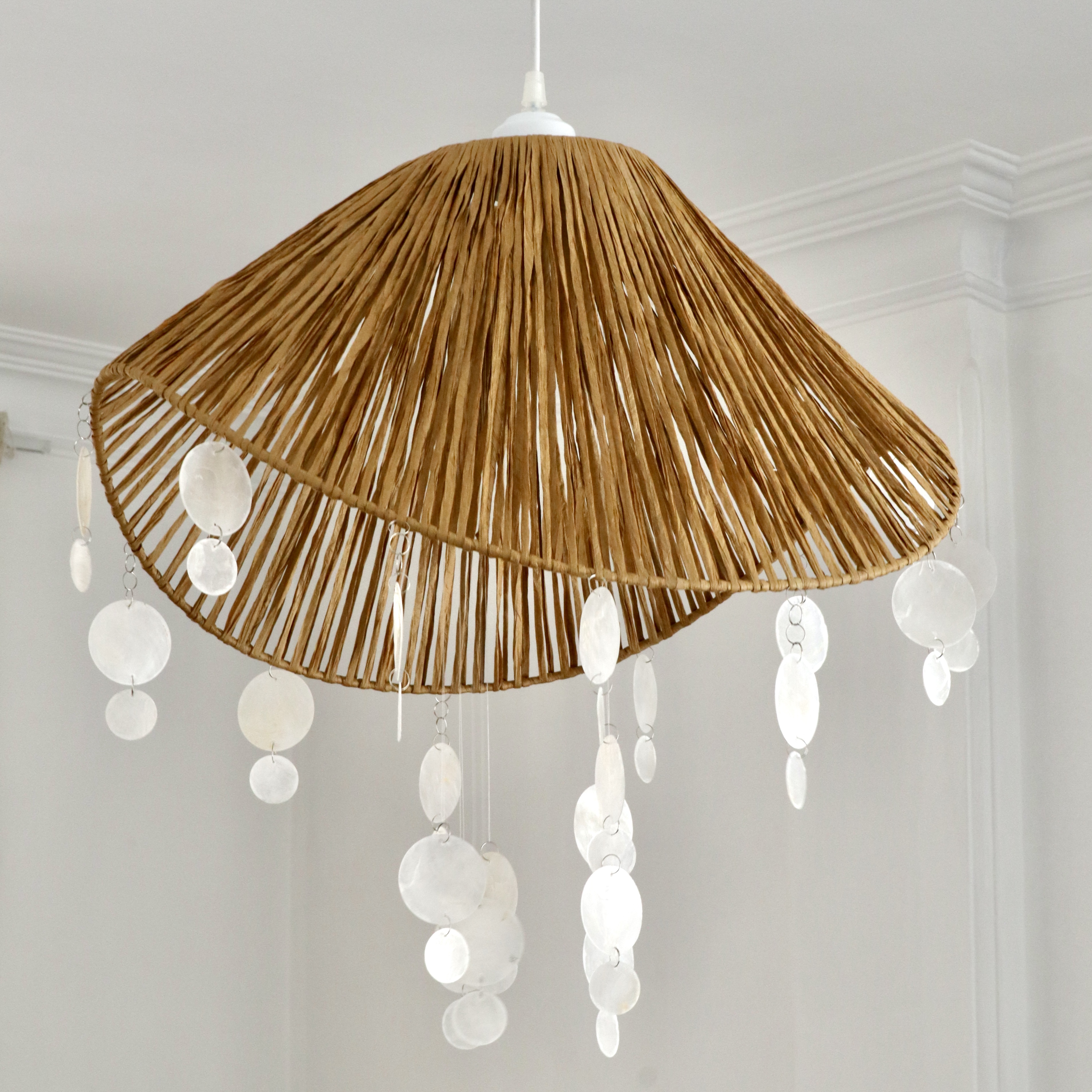 لوستر کلاهی بافته شده با نخ رافیا نواری صدری + صدف پولکی