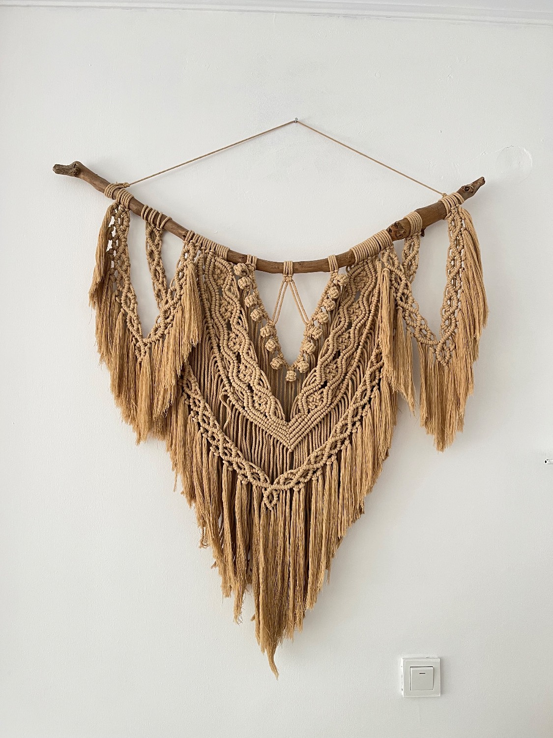 دیوارکوب مکرومه با چوب طبیعی