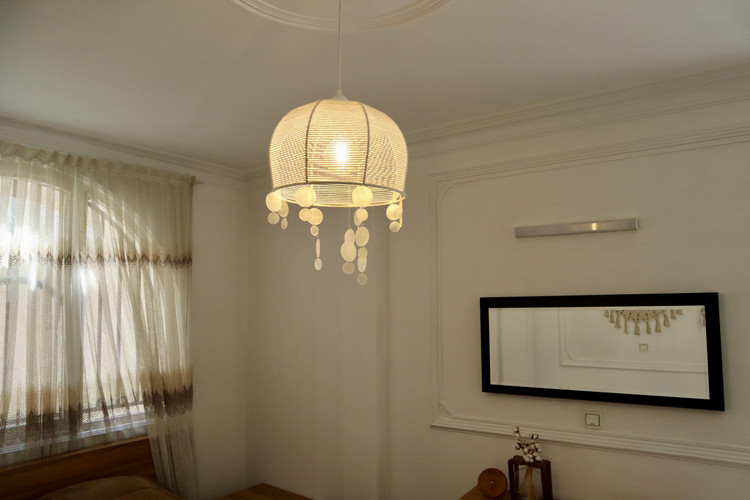 این لوستر مکرومه با فریم فلزی محکم و بافت ظریف نخ شیریرنگ ساخته شده و ظاهر آن ترکیبی از سادگی، لطافت و سبک بوهیمو است. آویزهای صدفی پولکی با درخشش طبیعی خود جلوهای خاص و آرامبخش به این مدل میبخشند. این لوستر برای اتاق خواب، آشپزخانه، تراس و فضاهای کافهای انتخابی بسیار مناسب است و میتواند حالوهوای محیط را گرمتر و جذابتر کند. محصول بهصورت بدون لامپ عرضه میشود.